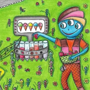 Moje umelecké výtvory sa vyznačujú pestrými farbami a hravosťou.